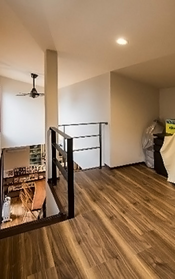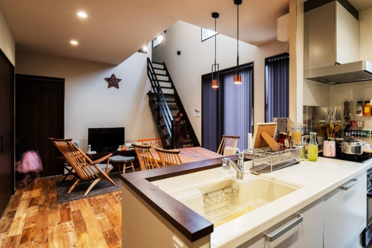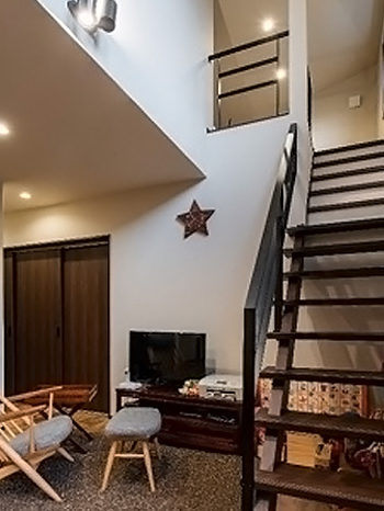 吹き抜けを作り、開放的な明るいLDKとなりました。