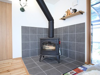 LDKには、ご主人の夢だった薪ストーブを設置。炎を眺めつつ憩うスペースができました。